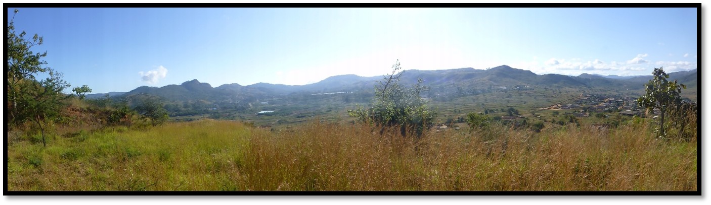 View from Fort Hill towards Penhalonga and the Rezende Mine. St Augustine’s Mission on the left