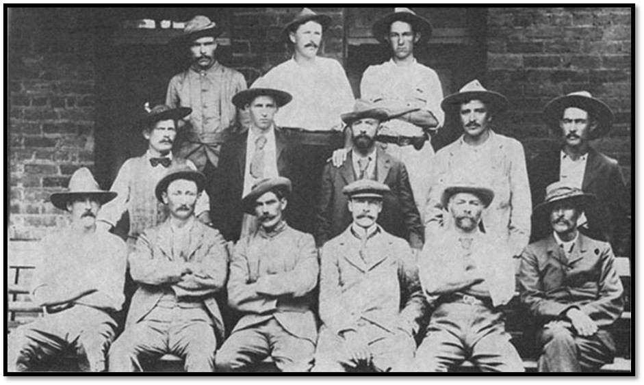 Front (L-R) H.M.G. Jackson, W.E. Thomas, H.J. Taylor, Capt. The Hon A. Lawley, J.W. Colenbrander, unknown