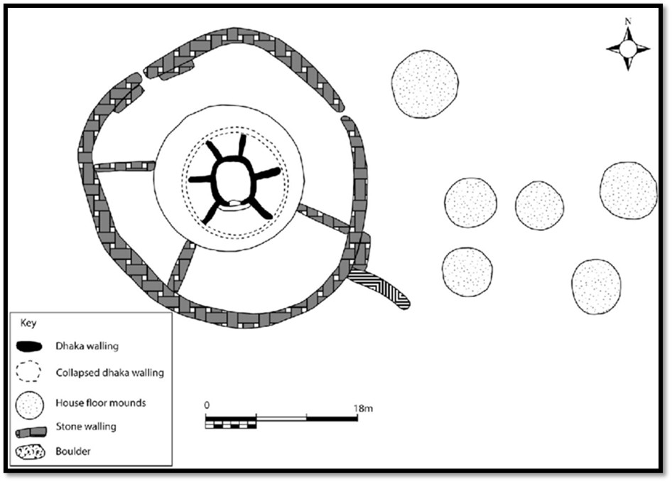 Khami: plan of the Circular platform showing the organisation of space within and around the platform[13]
