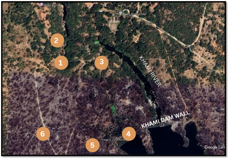 Google Earth view of Khami with important features marked