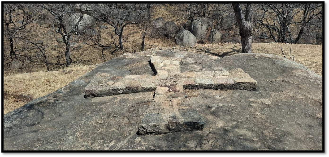 The ruined walls have some fine checked patterns using darker dolerite to contrast with the lighter granite. It is not possible to say what the original function of this platform was, as sadly this area was completely destroyed by W.G. Neal and G. Johnson, two prospectors who established a company, Rhodesia Ancient Ruins Ltd and in September 1895 the British South Africa Company (BSACo) granted the company, “the exclusive right to explore and work for treasure” in several ruins in Matabeleland and, “the first right to work further ruins.” Initial shareholders were Maurice Gifford, Jefferson Clark, Tom Peachy, W.G. Neal, George Johnson and Frank Leech. Neal and Johnson agreed to do the actual exploration and digging. In return for the concession, the BSACo would have 20 per cent of all finds and that “Mr Rhodes on behalf of the BSACo [would have] the first right of purchasing any discoveries.” Great Zimbabwe was excluded from the company’s activities.