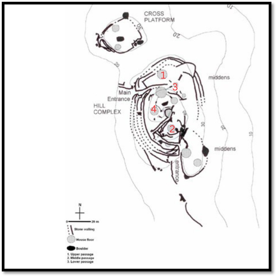 The summit of the Hill Complex with the Rule’s residence on the right