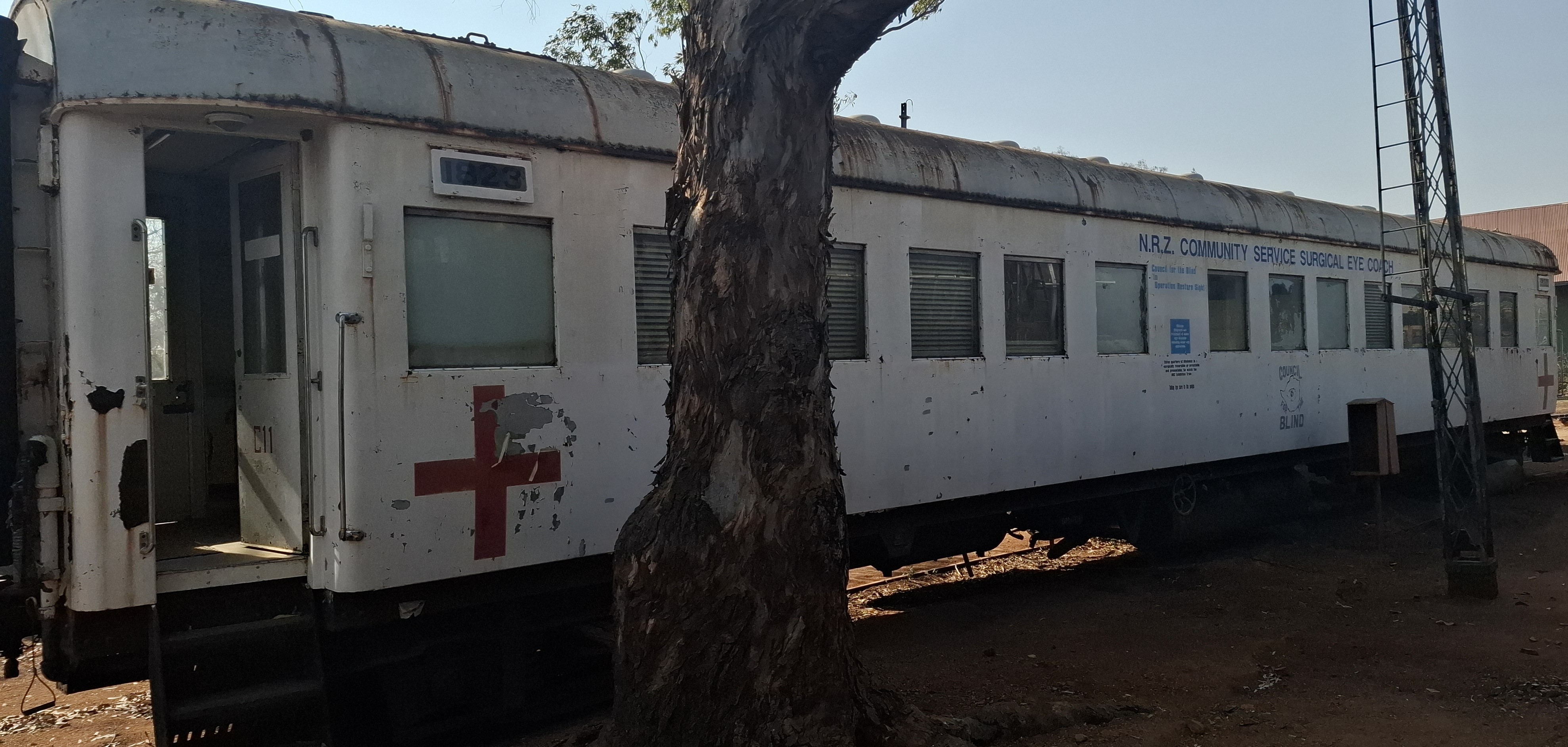 Built by Gloucester Railway Carriage and Wagon Company Ltd in 1958 - one of 12 built as a batch. The coach's functioin changed in 1997. Prior to this it had been an army surgery for Zimbabwean troops guarding the war -damaged railway line in Mozambique during that country's civil war. It was converted ibto an 'eye coach' and between 4 November 1997 and 4 February 1998 performed 5,000 consultations and over 500 cataract operations.