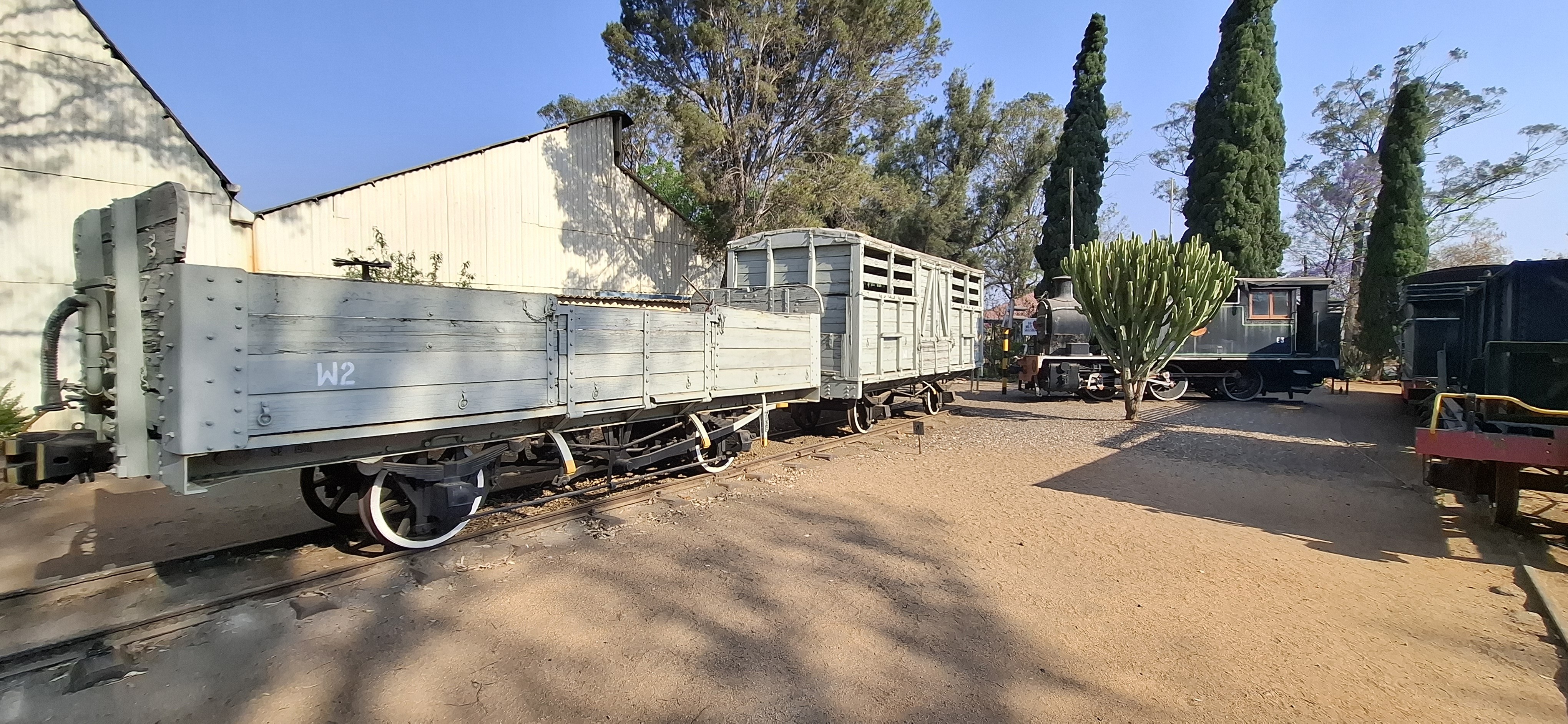 On display are some magnificent examples of early passenger coaches, including Cecil Rhodes' private saloon, which was also used to carry his coffin from Cape Town to Bulawayo for his burial in the Matobo in 1902. But there is also a variety of general rolling stock including livestock wagons, passenger wagons, dining cars and a General Managers luxury private saloon, complete with kitchen, bathroom, dining room and bedroom.