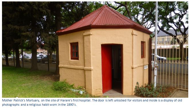 In early May 1896, Mother Patrick and a companion travelled to Gwelo (Now Gweru) where many of the wounded troops and civilians have been sent to convalesce during the Matabele Uprising, or First Umvukela. The courthouse has been turned into a hospital and a room prepared for the Sisters. The skilled work of mother Patrick and her companion and helpers over the next five months were much appreciated and there was deep disappointment when they were called back to help the victims of the Mashona Uprising in Salisbury. Initially in the laager around Salisbury gaol, they quickly moved back to their hospital site and carried on their nursing work.