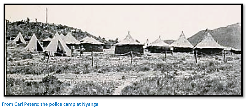 Peters has neglected to pay a courtesy visit to any of the local chiefs asking permission to enter their territory saying it is a waste of time and on the basis they might refuse permission. Now on 17 April the headman of Mafunda where they located “Massapa” marches past their campsite in the Muira river valley with 300 riflemen and then begins war-dances around their tents and to make threats against them. Consequently next day 20 April he sends Puzey to Inja-ka-Fura to settle matters with chief Kambarote.