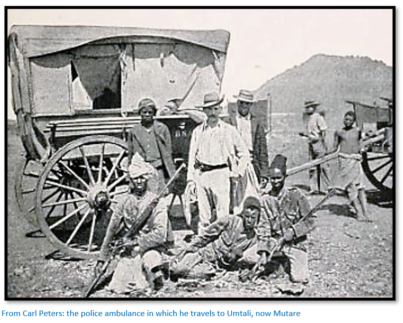 Carl Peters’ book is the subject of this article with details of his life and career following after. As A.J. Chennells writes in the foreword to the reprint edition the book is the “work of a deeply embittered man” who two years before had been stripped of his German official title, but still hoped to show that he had a role to play in colonial affairs. “I have not voluntarily left my old work, nor with a light heart, but was compelled to do so.”[iii]