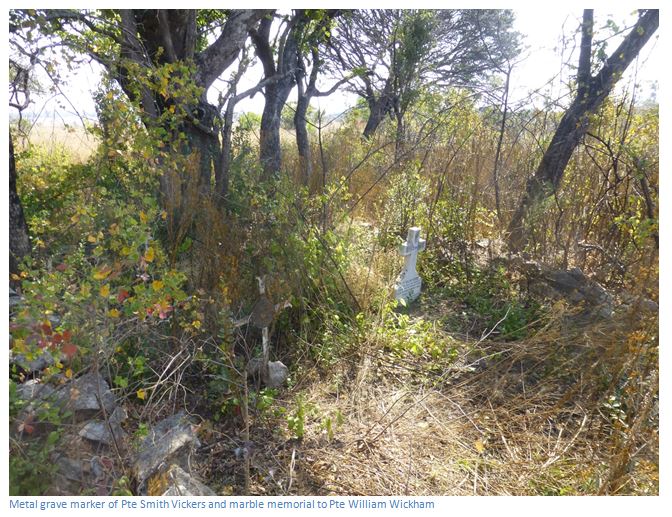 Pte Smith Vickers iron grave marker resulted from the lists drawn up by the Guild of Loyal Women (GLW) in 1908-9 which were drawn up in turn from lists drawn up by the BSAP and was presumably supplied with the incorrect date to the Gregory iron foundry in Cape Town where it was cast.