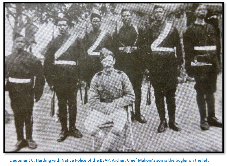 Colin Harding’s account of this episode in his book Far Bugles is as follows: “Between the attack made on Makoni’s kraal by Colonel Alderson on or about August Bank Holiday, and the attack made by Major Watts, which I am describing, Makoni had made signs that he wished to surrender on condition that his life should be spared. This request went through to the proper authority, i.e., the High Commissioner, and Makoni was informed that he would have to submit to a trial and the question of life or death would depend on the result of a trial.