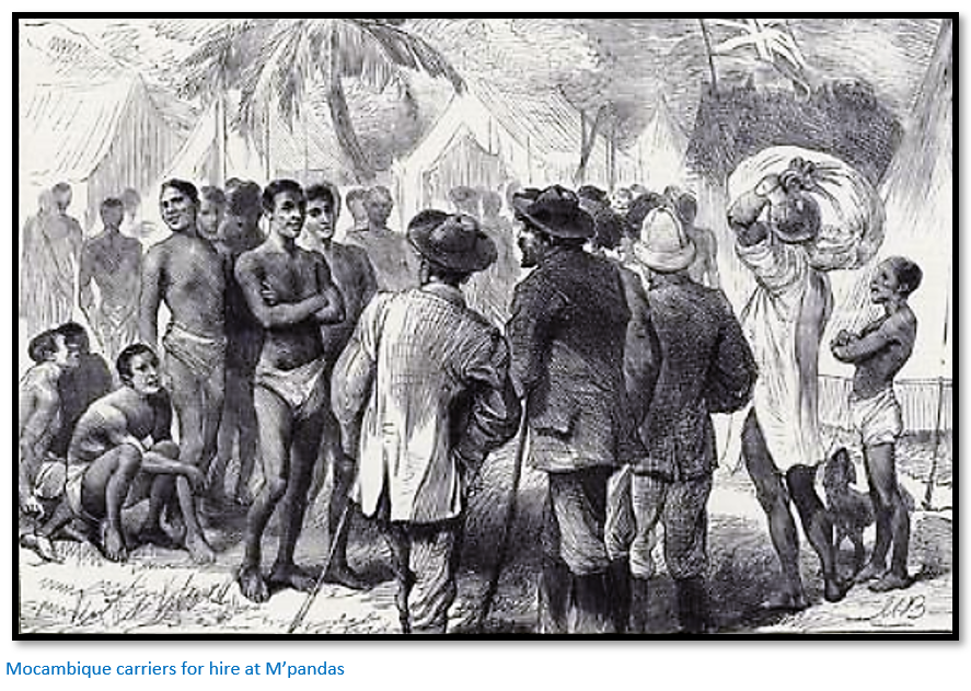 Next day Rhodes’ party passed the Portuguese Governor who was in a litter with a single pole along the back of the chair carried by four men and followed by fifty others. They came across many abandoned ox-wagons on the track whose oxen had been killed by tsetse-fly, but gradually the country-side became more open and, in the afternoon, they reached Chimoio where they hired additional carriers having twenty-five in all with individual loads of 16 – 20 kgs (35 – 45 lbs)
