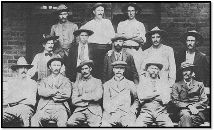 Front (L-R) H.M.G. Jackson, W.E. Thomas, H.J. Taylor, Capt. the Hon A. Lawley, J.W. Colenbrander, unknown