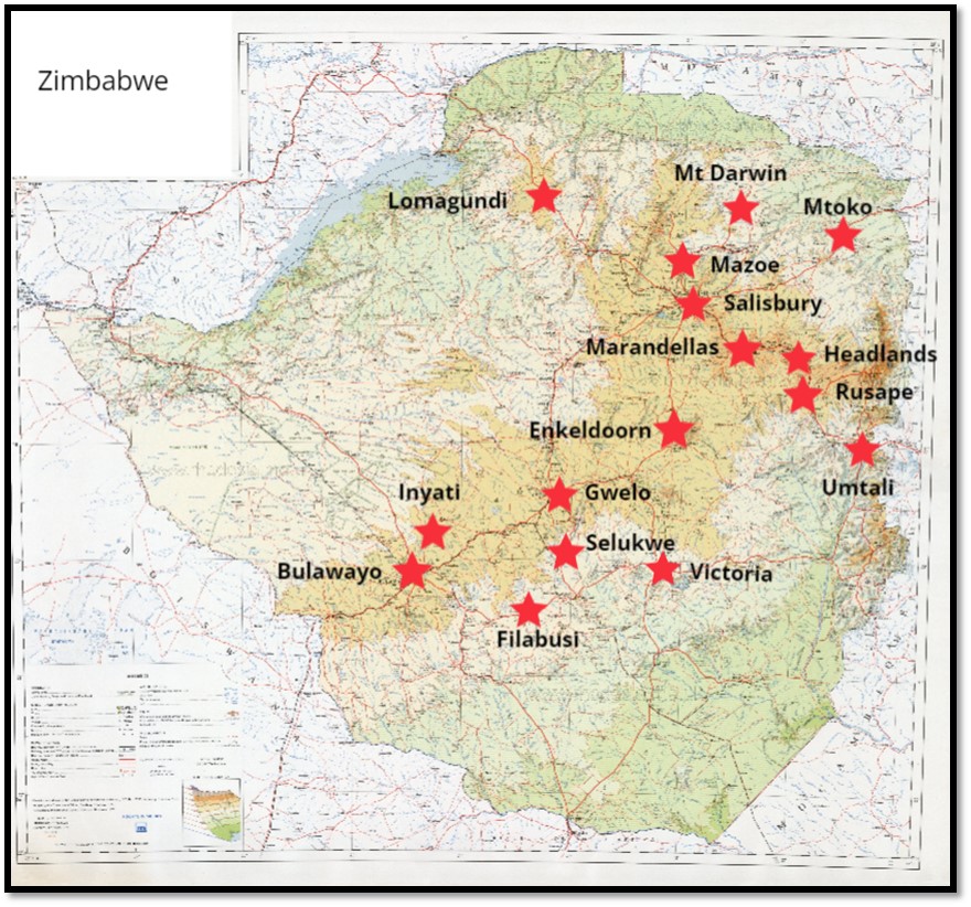 At the end of May or beginning of June 1896 the Kaguvi spirit medium summoned the agents of the central Shona paramount’s to Hartley using the pretext of distributing anti-locust medicine. The paramount’s each sent trusted headmen or close relatives and in many cases their sons. Chief Chikwakwa sent Zhante, his army commander, chief Zvimba his son, chief M’Southi sent his younger brother. chief Garamombe sent his son. Others included Panashe, the son of chief Kunzwi-Nyandoro and Mchemwa, son of chief Mangwende and the sons of chief Chingaira Makoni. Information was then given of the success the amaNdebele impi’s were having in besieging Bulawayo and their success against the white patrols on the Umgusa river.[10]