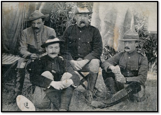 The Hon Lt-Col FRWE De Moleyns, Lieut Ferguson, Gen Sir F. Carrington, Lt-Col R. Baden-Powell in Bulawayo in 1896