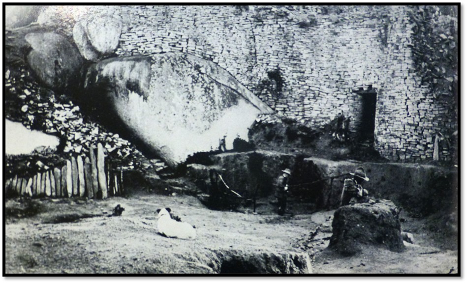 Karl Mauch describes the inhabitants as ‘Balosse’ but probably meant Rozwi.[1] After them tribal conflict brought other changes but in 1890 when the Pioneer Column arrived Great Zimbabwe was held by Duma under sub-chief Mugabe who had previously paid tribute to the Rozwi. In 1892 when Sir John Willoughby started his amateur excavations there was still disputes between the local tribes as to who ‘owned’ the site.