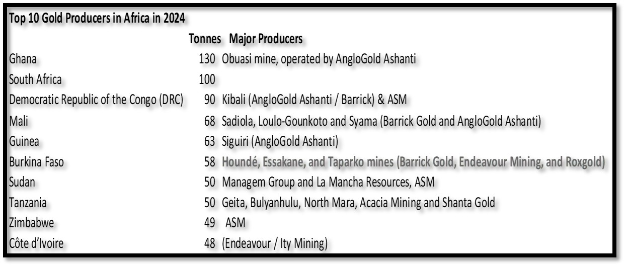 Sebastiane Ebatamehi. 12 Aug 2025. The African Exponent. Top 10 Gold Mining Countries in Africa 2025. https://www.africanexponent.com/top-10-gold-mining-countries-in-africa-2025/