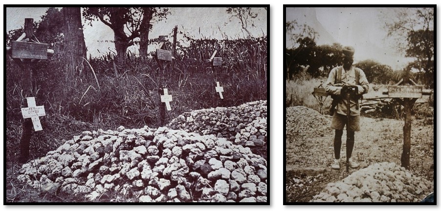 Colonel Driscoll commander of 25 Royal Fusiliers wrote, “Captain Selous, the great hunter, was one of the hardest men in the battalion in spite of his 65 years. He was shot dead whilst leading his company through the bush against an enemy four times their strength. Lieutenant Dutch, another very gallant man, took his place and received a mortal wound immediately afterwards. No sculptured mausoleum records his prowess, but only a simple wooden cross bearing his name and that of his good comrades stands beneath the shade of a tamarind tree in a woody forest.”[xxxv]