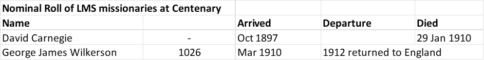 Unlike in Inyati and Hope Fountain, Centenary Mission Station was the work of one man, David Carnegie. Carnegie and his wife had spent fifteen years at Hope Fountain and there was a happy comradeship with the Helm’s and much sorrow at their departure from the Hope Fountain congregation.