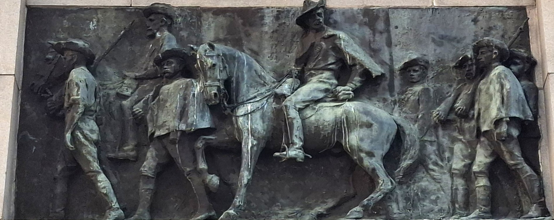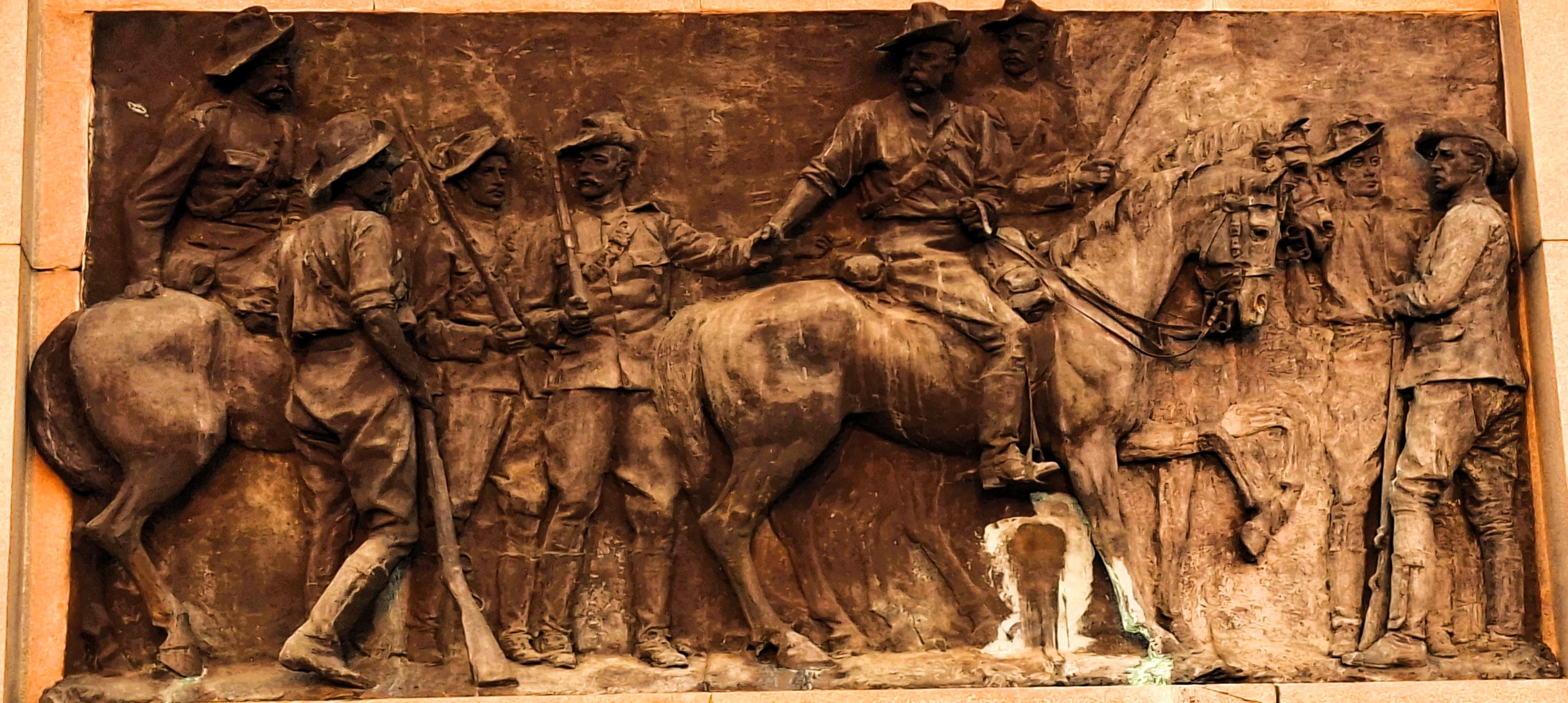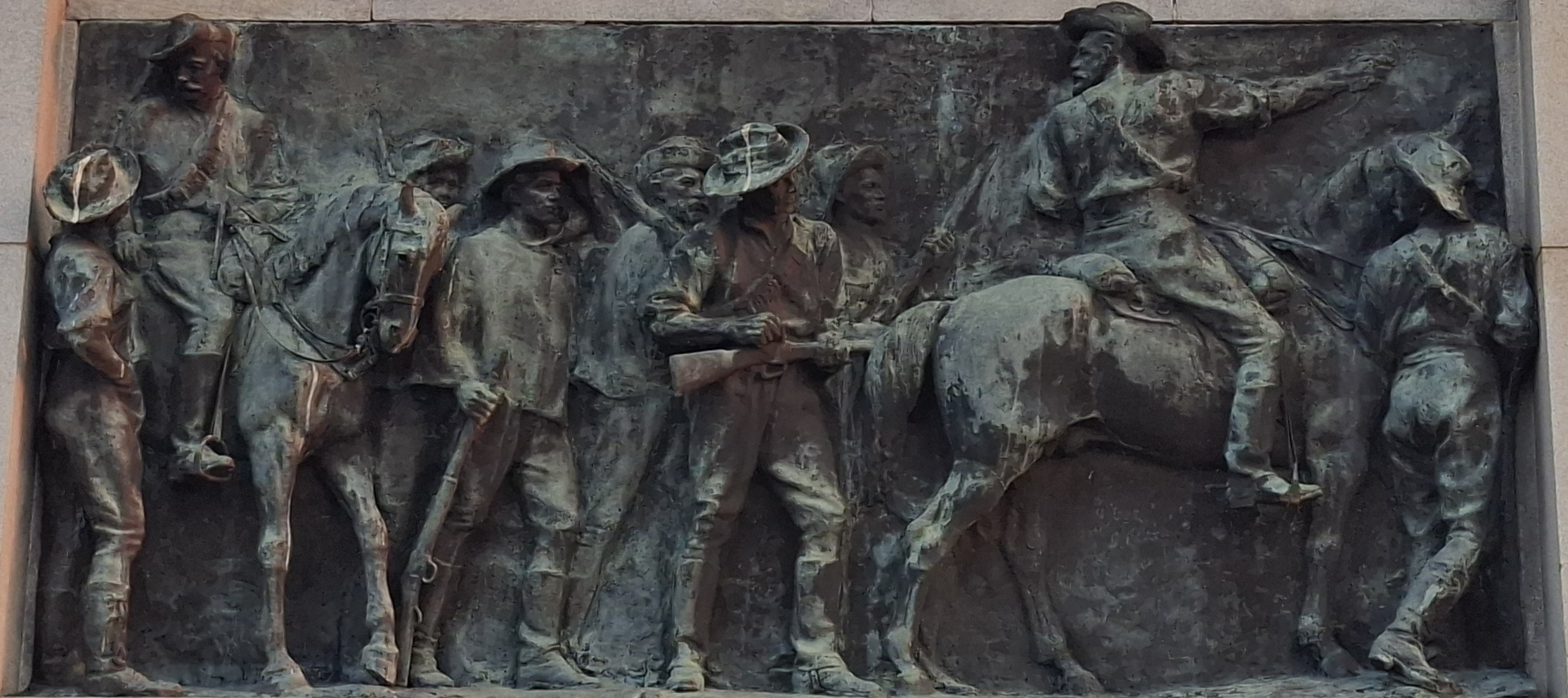Lobengula’s bodyguard then surrounded and attacked the Wilson’s patrol, who remained isolated, and severe fighting lasted for several hours.[17] The patrol took cover behind the dead bodies of their horses, the wounded reloading and passing their rifles to their uninjured comrades and fighting on, but one by one the men fell until finally all were dead. The position of the bodies showed they had stood shoulder to shoulder throughout the fight. One, whose identity was never discovered, held the amaNdebele at bay for a long time when all his comrades were dead. At last, he was shot down and the amaNdebele said there were six or seven wounds on his body.