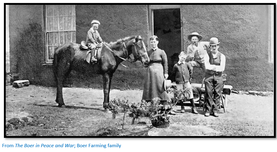 “Luncheon discussed and oceans of fizz consumed, to say nothing of brandy and soda, beer and such like beverages, an attempt at dancing was made, but the only music being a concertina, the only dance a mazurka and the only floor a mud one, it soon degenerated into a romp, the great aim and object of which appeared that each gentleman should kiss as many ladies as he could, to which proceedings I must say, though occasionally after a little playful coyness, the ladies showed not the least objection. Indeed one good old dame of over 50 would insist in the exuberance of her feelings upon embracing me most tenderly, upon which as she was usually in the habit of taking snuff profusely caused me to leave the revels and seek sobriety and consolation in a pipe. Glascott, less lucky however, continued in the merrymaking and attempting to get up a little mild flirtation with a buxom young Boer lady, received just in the way of playful coyness such a backhander from the hands of the fair one as to send him reeling onto his back, to her intense amusement. He declares he never received such a thorough knock-me-down in his life or one delivered with such goodwill; but it was merely in play, kiss and make friends and everything goes as merry as a church bell.”