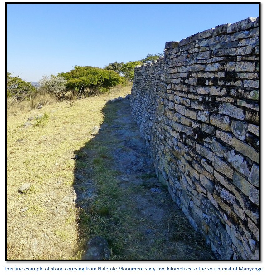 The dry-stone buildings of Manyanga Monument ruins have been little described in the literature; even C.K. Cooke, the Director of The Historical Monuments Commission in his booklet on Ancient Ruins of Rhodesia included Khami, Danan’ombe (formerly Dhlo Dhlo) Zinjanja, (formerly Regina) and Naletale, but excluded Manyanga.  Although this site is considered of great importance from the archaeological point of view, as far as I know it has never been comprehensively excavated; although it is a National Monument; but sadly was subject to the destruction of the Ancient Ruins Company whose operations only ceased in 1900.