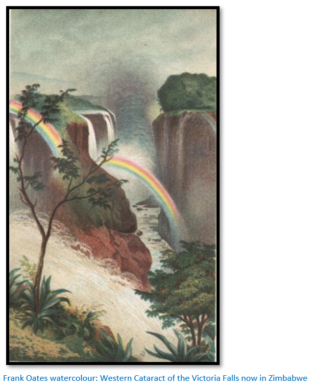 Wikipedia say he was an explorer, but the Cambridge Dictionary describes the term as someone ‘who travels to places where no one has ever been in order to discover what is there.’ But this hardly applies in Oates’ case as Matabeleland and the Zambesi in the 1870’s were well-travelled by this time. They also say he was one of the first to see the Victoria Falls and he was certainly one of the first one hundred Europeans to view the Falls.