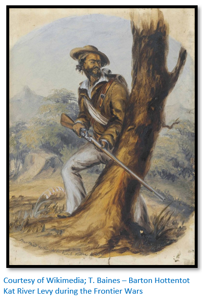 The young man, however, tired of repetitive painting and in 1848 headed for the Eastern Cape—to Grahamstown and its hinterland. Baines based himself in the Eastern Cape between 1848 and 1853 and from there he undertook three journeys to the interior. The first, in 1848, took him beyond the Orange River; on the second in 1849 he travelled beyond the Great Kei River and over the Great Winterberg mountains; in 1850 he made an attempt to reach the Okavango swamps of northern Botswana. Returning in 1851 he found Grahamstown almost in a state of siege and was offered a post as artist-draughtsman to the forces under General Somerset 1852 during the so-called Eighth Frontier War. He made many sketches of the action, some for the Illustrated London News, frequently at great personal risk.