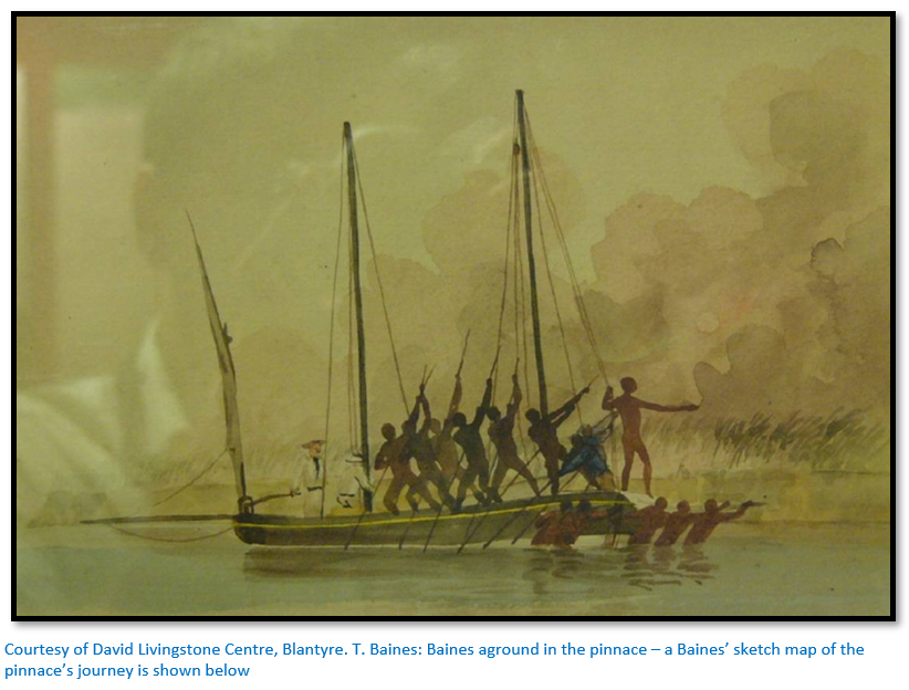Baines had involved himself in every aspect of the Expedition, including woodworking and boat building, but suffered recurring bouts of malaria - as did most of the expedition members. The crunch came when he was accused by Charles Livingstone of being free and easy with the stores, of “skylarking”, ruining a whale boat and wasting his “time and materials in painting Portuguese portraits”.
