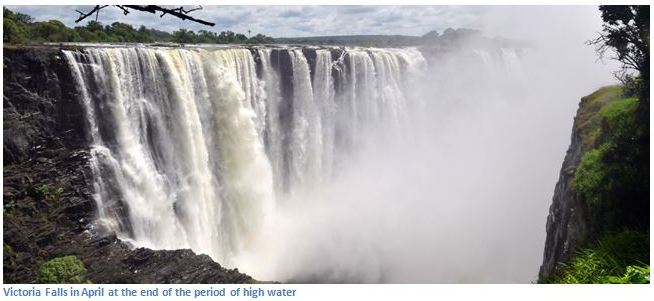 There is a slight catch in timing the season correctly; too much water and it’s not possible to see the waterfall for the spray; not enough water and all the rock face is exposed. For white water rafting the lower water flow gives excellent rapids – so check the seasons! Generally the highest flow rate is in April, the lowest in November. High water runs from January to July miss out the first 10 rapids as they are just not safe to raft at the high water level and you will only do rapids 11 to 23. It is a shorter day even though it is still sold as a full days’ rafting. There are rated by some as the best one day rafting trip in the world.The two photos below from africageographic.com show how dramatically the water flow changes in just over a month.