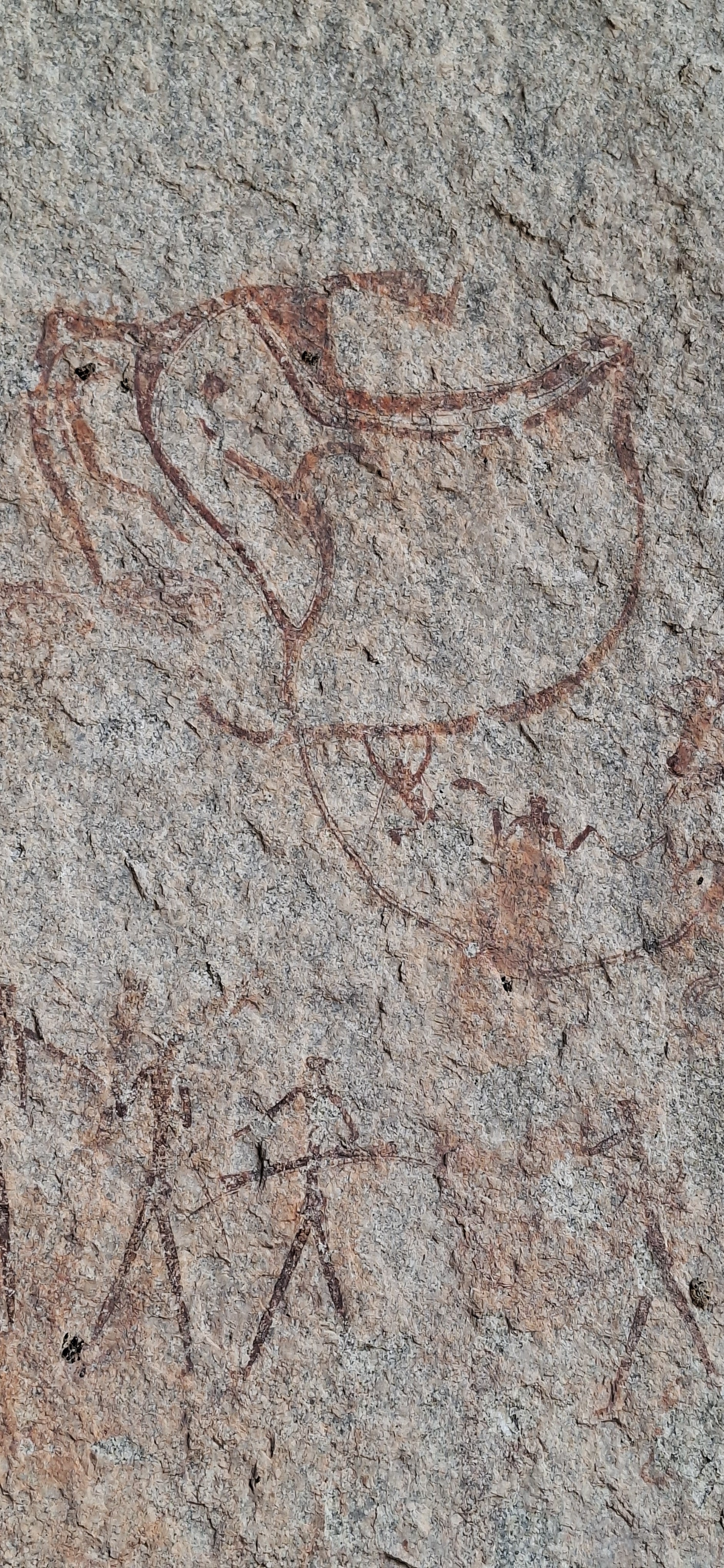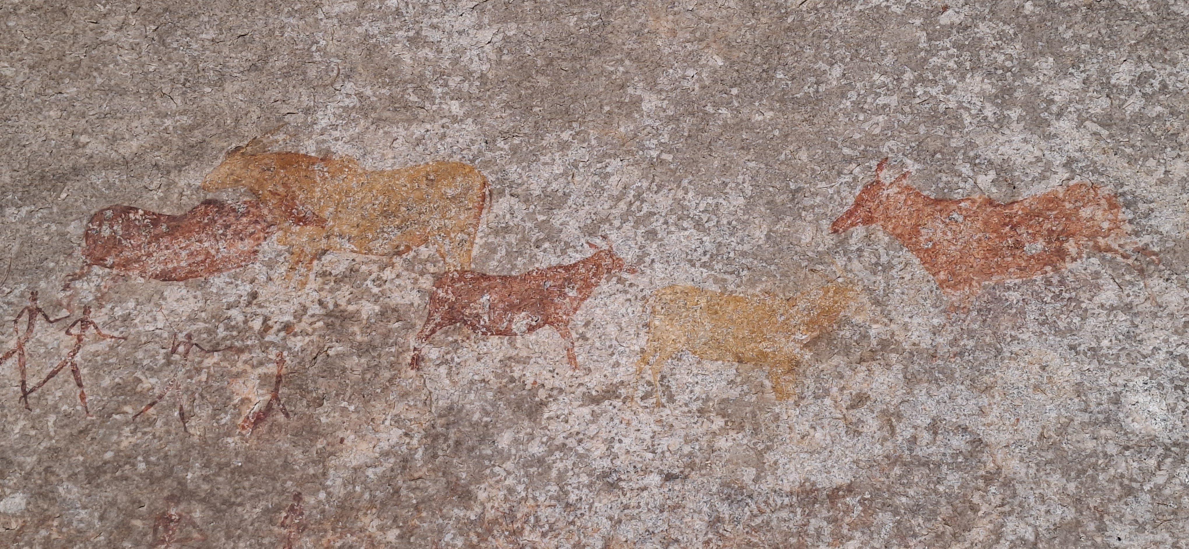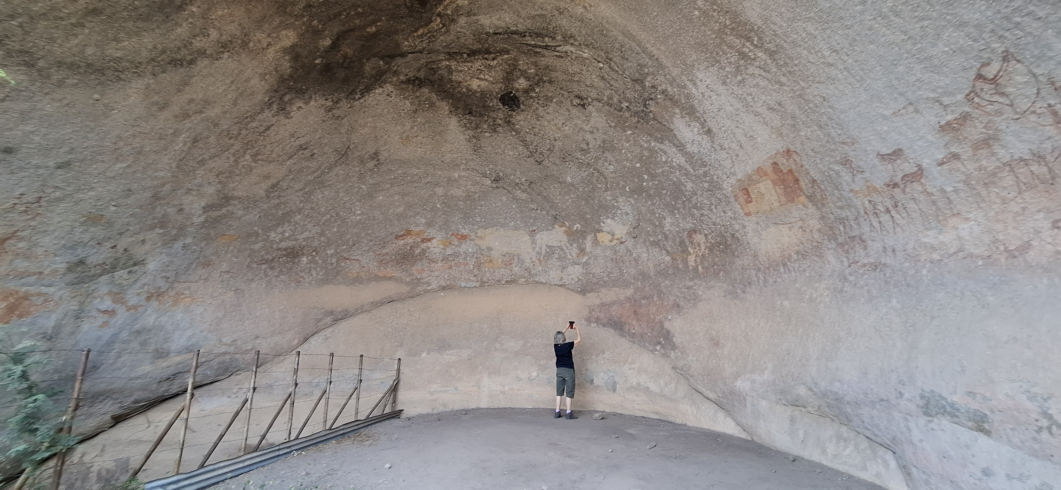 The cave sits below the summit of Bambata Hill with relatively easy access and lies within a wonderful landscape of enormous dwalas of the Matobo Hills.