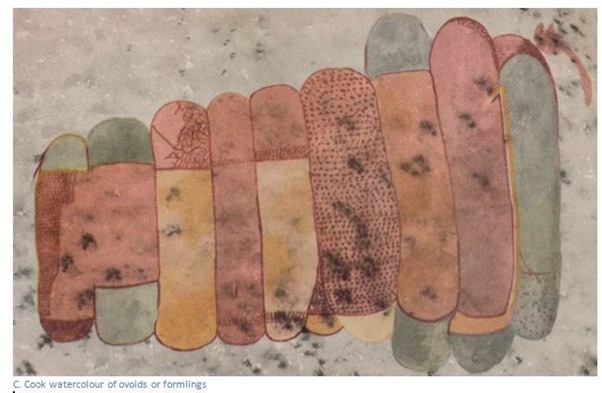 Two sections were systematically excavated to the bed-rock of the cave, a maximum depth of 20 feet 3 inches, and yielded a complete sequence of deposits varying from Lower Paleolithic (South African Acheulean) to a Microlithic culture, believed to be ancestral to the Wilton culture of the Cape. The succession of cultures was found to be in close agreement with the European sequence. In addition to the work of excavation, the whole of the wall-paintings were carefully traced.”