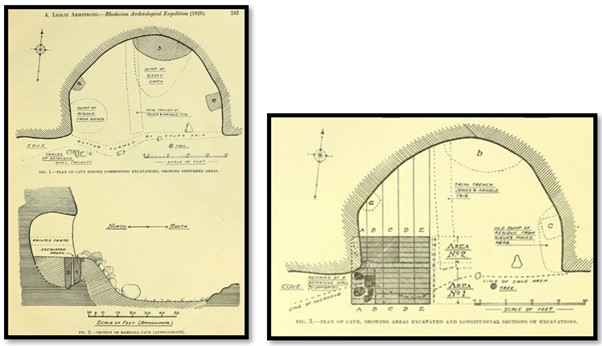In 1929 a more extensive examination was made by the British archaeologist A. Leslie Armstrong; a camp named "Paradise Camp" was established a few metres outside the cave. Many of the artefacts unearthed during this excavation can still be seen lying around on the ground outside the cave.