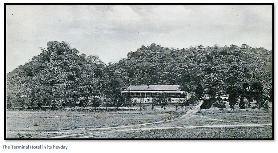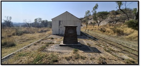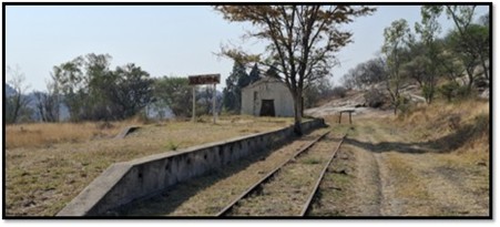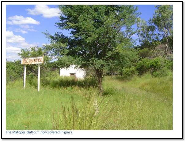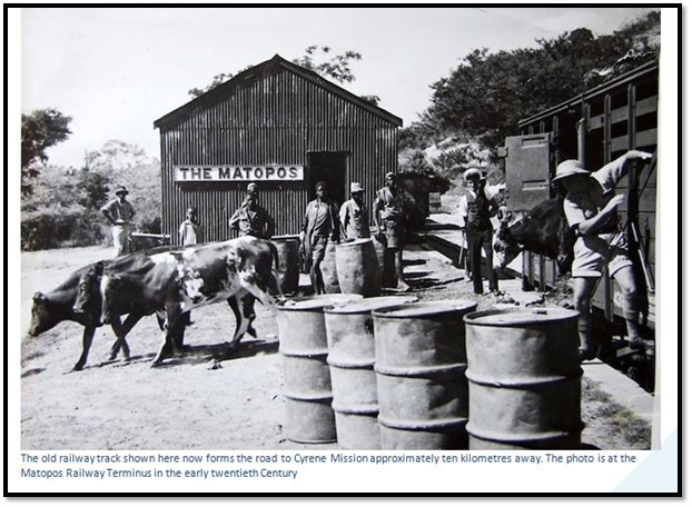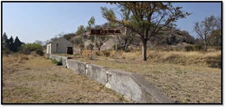 The terminus, now in a very dilapidated state, is on the old rail route into the Matobo Hills. By starting at the Cyrene Mission, it is still possible to follow the route of the old railway line, and see the approach to the hills that was so familiar to visitors in the early twentieth Century. Surrounding the old Matopos Terminus are the old houses, the Hotel, the arboretum and offices of a once thriving “Matopos” hamlet. There is untapped potential in this historic site. National railways of Zimbabwe restored the platform and signage in 1997 as part of the railway's Centenary celebrations, but nothing has been done since.