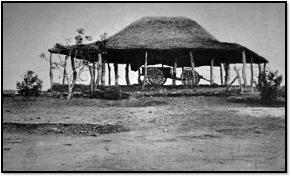 On 9 April 1902 after lying in state at Bulawayo, followed by another funeral service, the funeral cortege left Bulawayo Drill Hall with the coffin resting on a gun-carriage pulled by mules to Rhodes’ farm, Westacre Estate, on the edge of the Matobo Hills where the gun carriage spent the night under his Summer House as seen in the photo below. See the article Rhodes Summer-house under Matabeleland South on the website www.zimfieldguide.com
