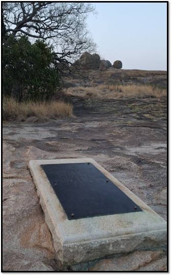 About 3pm they all set off and after about an hour’s riding they came to the foot of the hill and after throwing their horses’ reins over their necks were led up by Rhodes to the top of the hill where there was a fine view. Rhodes walked back and forth before saying, “I shall be buried here, looking in that direction (pointing north) and the remains of Allan Wilson and his party must be brought up here also and put inside the memorial I shall put up to their memory. Now don't forget that, the remains of Allan Wilson and his men are to be put there”