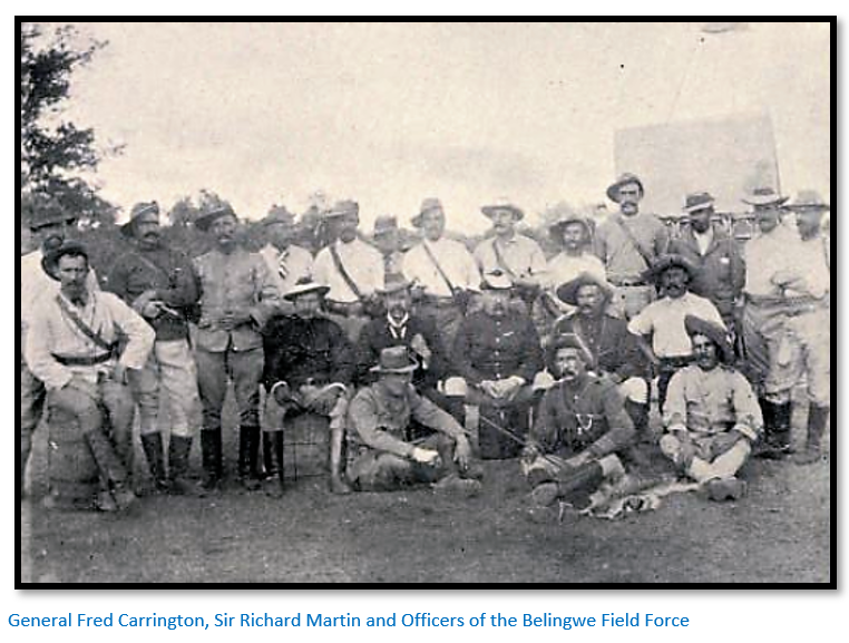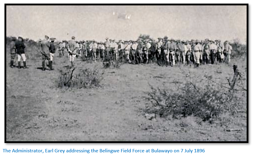 Also reported on in the same issue of the Rhodesian Weekly Review was the inspection by General Carrington and the Administrator Earl Grey in which the force was highly praised and thanked for the work they had carried out to make the countryside safer. At the same time Grey announced that Colonel Plumer had inflicted a defeat on the amaNdebele at Ntaba zika Mambo. [This is described in the article Battle of Ntaba zika Mambo, Manyanga or Mambo Hills under Matabeleland North on the website www.zimfieldguide.com] The Belingwe Field Force would be deployed to the Matopos within a short time.