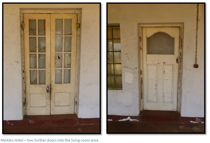 David Worthington, who managed Charter Estates from 1948 – 1985, says the Hotel consisted of three rooms for the Manager’s use, a large communal dining / living room and six box-like rooms each 3 metres x 3 metres for travellers. Worthington says he actually knocked down the walls and made them into three larger rooms of 3 metres x 6 metres. In the 1950’s, the house was struck by lightning and he had to jack up the roof and rebuild a wall, finding bricks of seven different sizes, some unfired, there was no ant course, or a damp course, and damaged floor and joists, which he replaced with panga-panga blocks, which still survive.