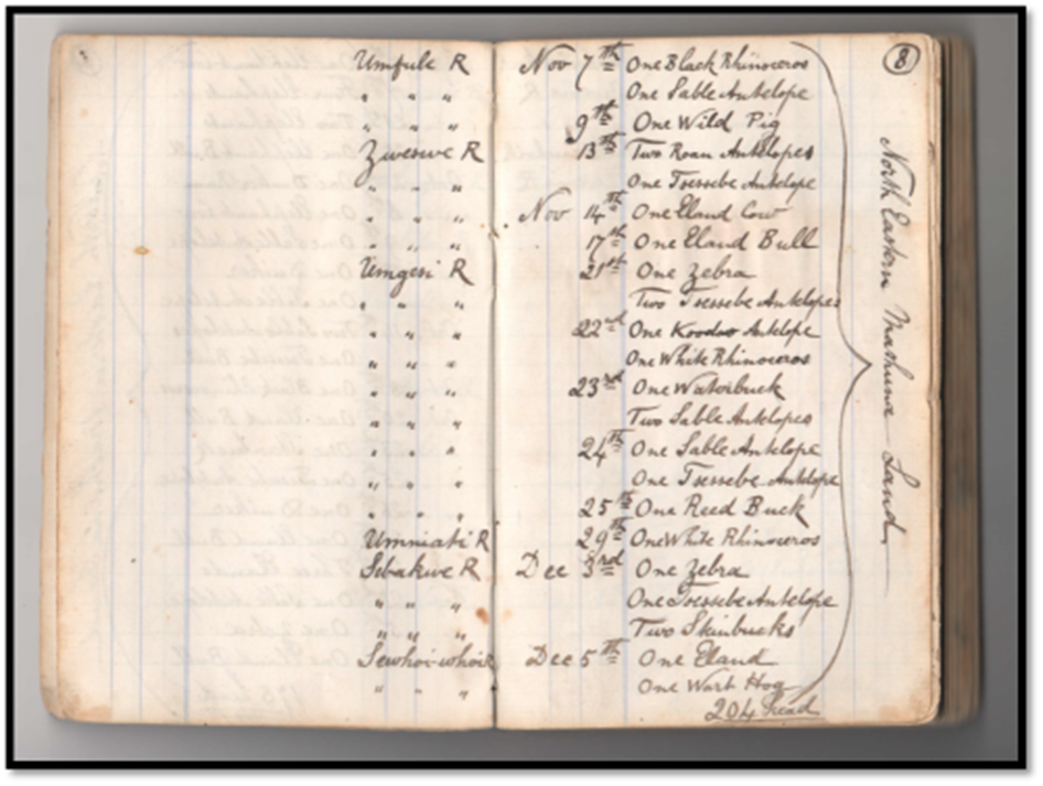 Selous’ game book for Nov / Dec 1878