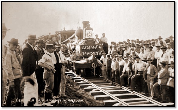 NAZ: Harold Pauling’s construction train arriving at Bulawayo on 19 October 1897