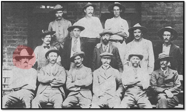 Front (L-R) H.M.G. Jackson, W.E. Thomas, H.J. Taylor, Capt. The Hon A. Lawley, J.W. Colenbrander, unknown