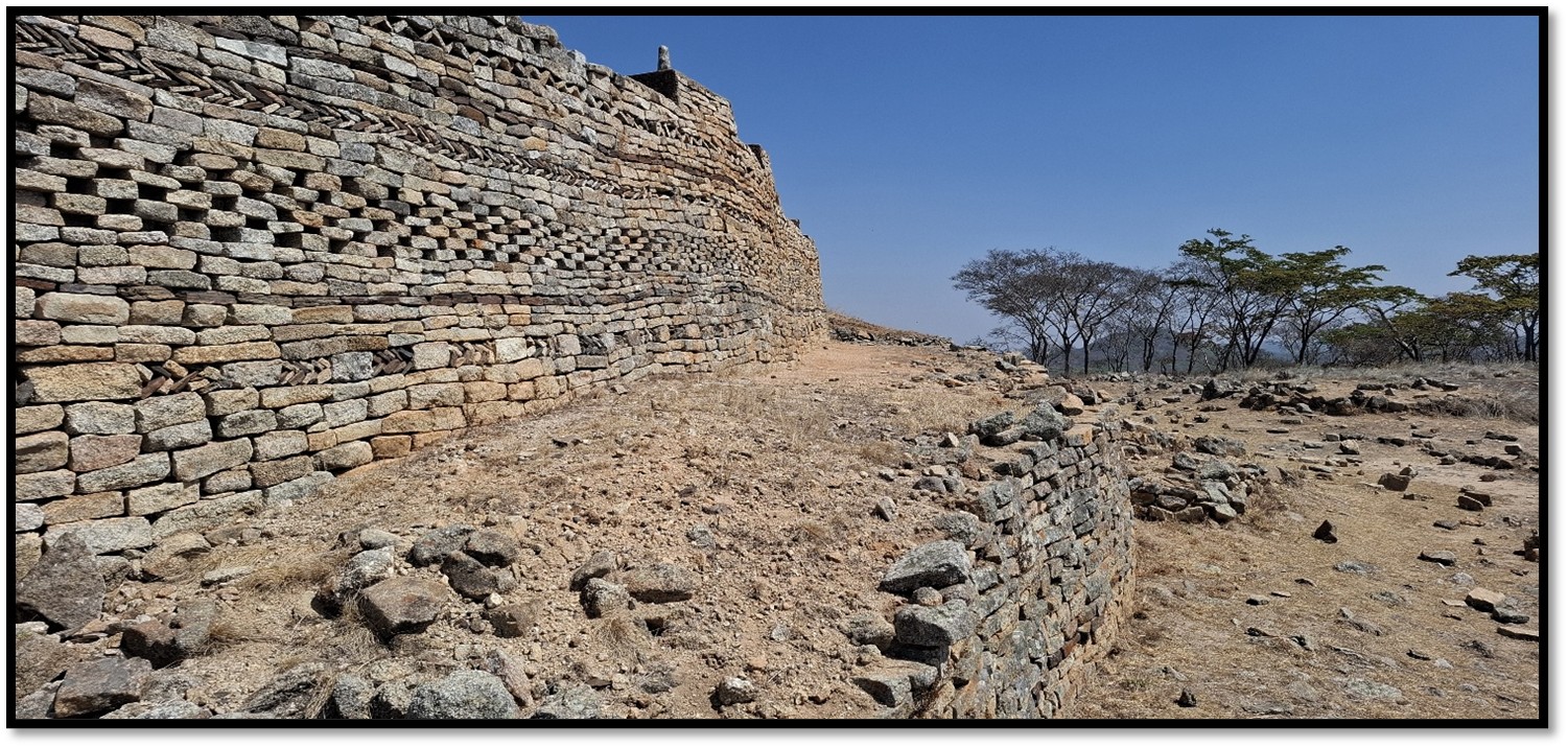 Naletale has undoubtedly the most magnificent decorated walls amongst the 300 dry-stone walled monuments to be found throughout Zimbabwe and the only ruin to have all types of patterning highlighted as banded iron-stone decorations.