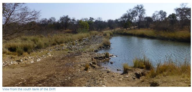 Orton’s drift was made of stones which were laid on edge from bank to bank across the Sebakwe River at normal flood height and is still negotiable by vehicle, although the low-level bridge 200 metres is much more convenient. A considerable quantity of stones was dropped into the riverbed which had the effect of damming up the river to the east, but allowing the water to flow over the Drift and downstream and it is still possible to walk from bank to bank without getting one’s feet wet!